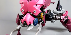 Modifiqué la estructura del cuello y la cabeza y reutilicé la articulación base de la rueda de la figura para construir un cuello que sustenta la cabeza robot y la bestia, permitiendo que giren para la transformación. Cambié los pies para que fuera más alta, y agregué un caparazón y faldones con articulaciones internas para permitir la transformación.